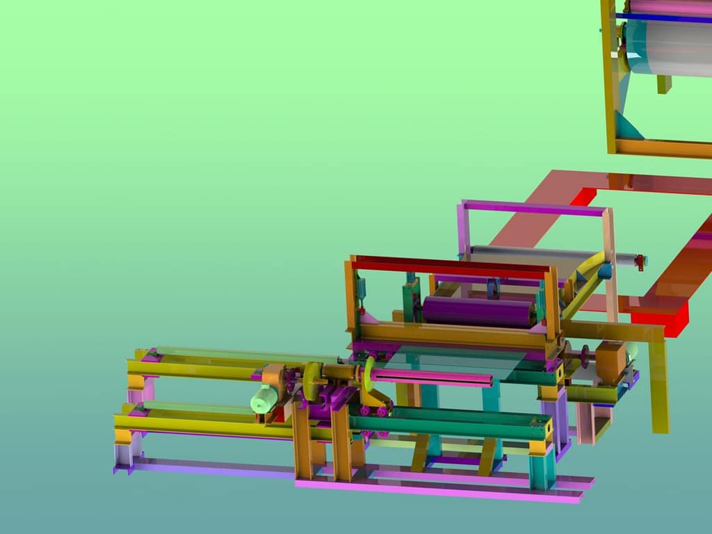 В 2001 году я пришёл работать к своему знакомому со школьных времён Ильчакову Александру Владиславовичу, был арендован ангар по адресу улица Северная 2 (ныне Макара Свистуна) в самом конце улицы за троллейбусным депо и резервными водохранилищами рядом со строительной организацией Витязь. Был арендован ангар и я начал проектировать, а потом и помогать строить рубероидную линию. Металл брали в основном Б\У ради экономии, но в то время на приёмках металлолома было много делового металла. Линия не сразу приняла такой вид как на визуализациях. Фотографий не сохранилось, я сам тогда имел только плёночную «мыльницу» и особенно фотографировать было нечего, линия строилась по частям, модернизировалась до желаемого по ходу, и что то смонтированное имело фотогеничный вид до первой рабочей смены, а так рубероидная линия в бюджетном исполнении это битум, песок, каолиновая грязь и прочий мусор. Но это работало, выдавая до 800 шт, 10-ти метровых рулонов с присыпкой из гранотсева, кровельного рубероида на картонной основе, картон РК-420, или на такой же основе 550-600 шт, 15-метрового подкладочного рубероида с песчаной присыпкой, тогда такие сорта были актуальны и нарасхват.