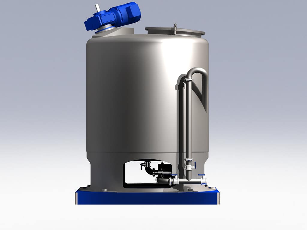 Для некоторых ингредиентов требовалась передвижная ёмкость на 2 кубометра снабжённая мешалкой. Такой профиль лопастей мешалки является расчётным для получения необходимых сдвиговых напряжений для гомогенизации сырья.